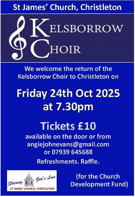 Fri 24th Oct 2025 at 7.30pm in church. Admission £10. See posters/flyers for ticket details, or pay on the door. Refreshments and raffle. A delightful evening with proceeds to the Church Development Fund.